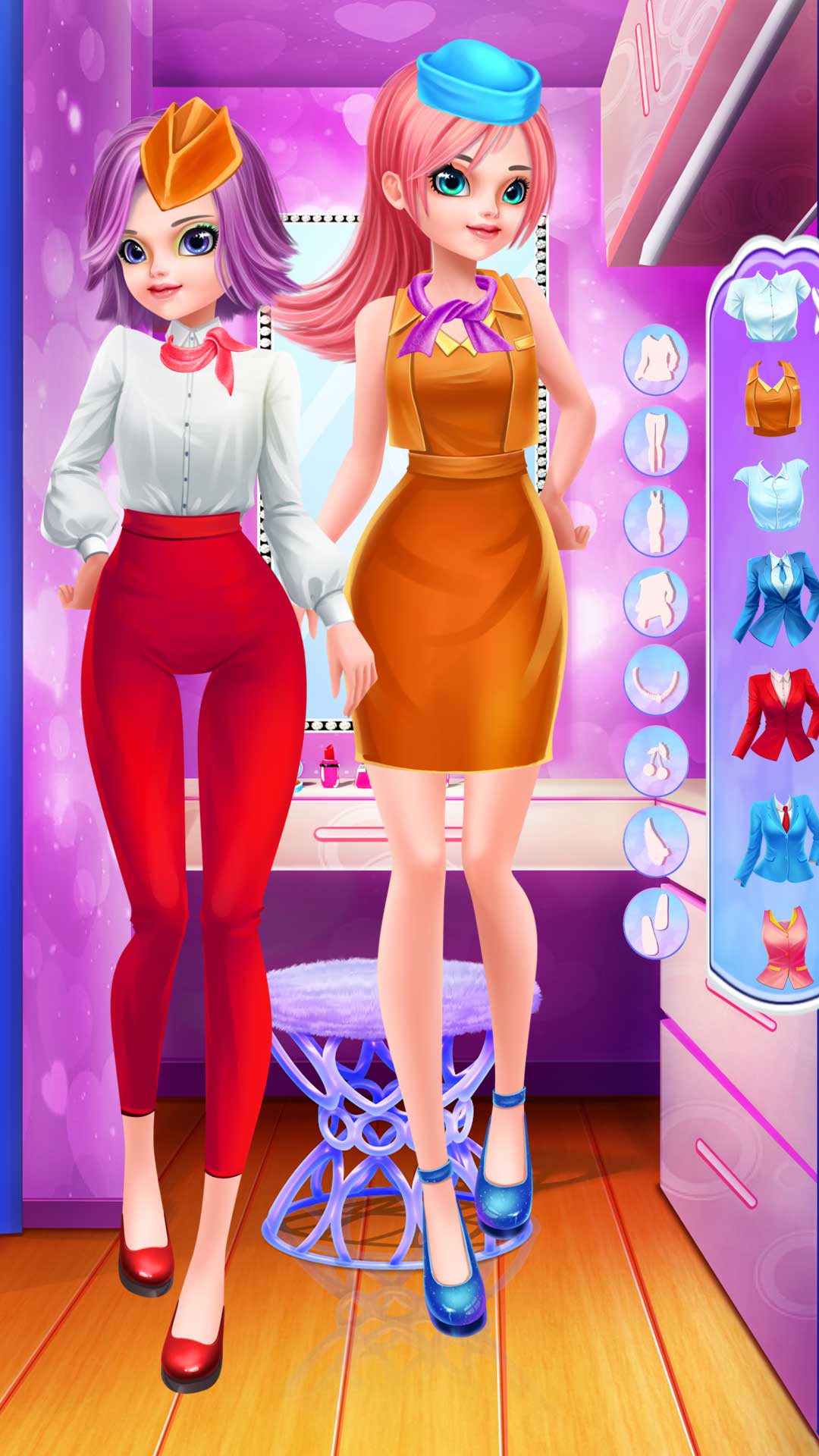 这款游戏最大的特色是把职场挑战和换装玩法完美结合。一方面要应对真实的航空服务场景:突发医疗事件、乘客焦虑安抚、安全检查等都能涨经验值;另一方面又能享受换装自由,上百套时装饰品随便搭,还能用金币解锁新航线。全球飞行系统超带感,从都市天际线到异国小镇,每个目的地都有特色事件。剧情也超走心,深夜备航、同事合作这些细节让人真正理解空姐的不易。
