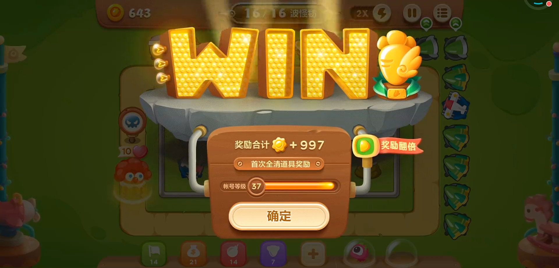 最终阵型应以满级玩具飞机为主,配合四个月亮炮塔形成减速控制。该关卡对炮塔等级要求较高,需确保关键炮塔及时升级。若感到压力较大,可使用萝卜技能辅助防守。障碍物全部清理后,金萝卜获取难度将显著降低。