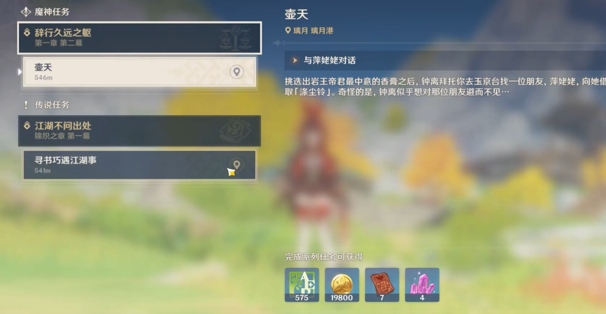 任务奖励包括经验书、摩拉、冒险阅历及精锻矿,属于常规支线奖励。整体流程以对话和轻度战斗为主,难点在于常九爷和行秋的位置定位,以及愚人众战中的策略选择。任务通过书籍线索串联角色关系,展现了璃月地区的江湖人情。