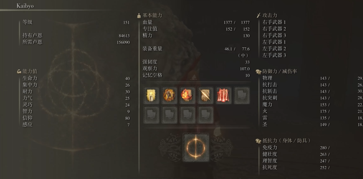 武士在140级时已经进入中后期阶段,加点需要兼顾生存与输出。优先将血量加到40点,保证不会被高伤害敌人秒杀。耐力建议27点左右,这样能穿中甲并保持中等负重,翻滚和攻击更流畅。力量加到20点足够拿起水母盾等实用装备,敏捷主加到60-70点,配合打刀或猎犬长牙能最大化出血效果。集中力15点左右即可,满足战技需求。剩余点数可以分配给信仰或智力,解锁一些辅助祷告或魔法。