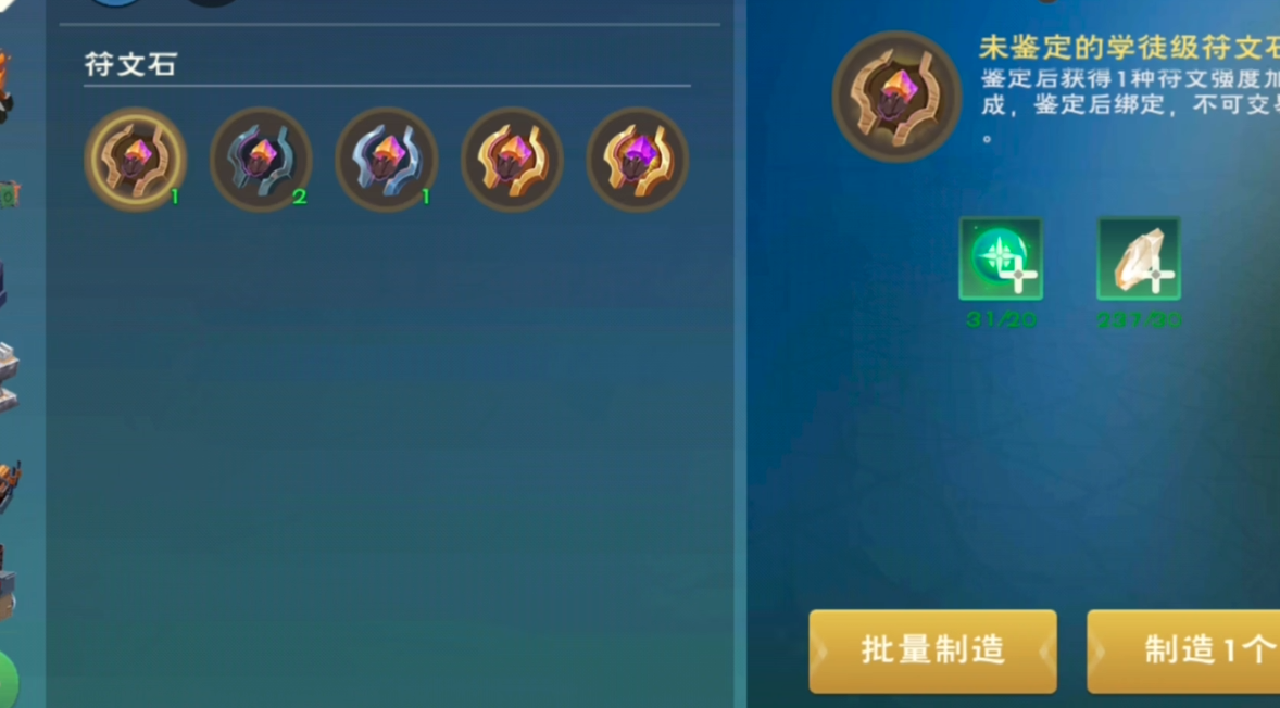 符文石分为学徒、入门、专家、大师四个等级,可提升魔法伤害。制作需符文魔晶、原石和晶珀,鉴定后装备生效。附魔需在符文附魔台进行,消耗星尘和星屑(通过击杀星域怪物获取)。同一魔法只能存在一个附魔效果,重复附魔会覆盖原有属性。建议根据战斗需求搭配不同属性的符文石,例如水土系侧重控制,火风系偏向输出。