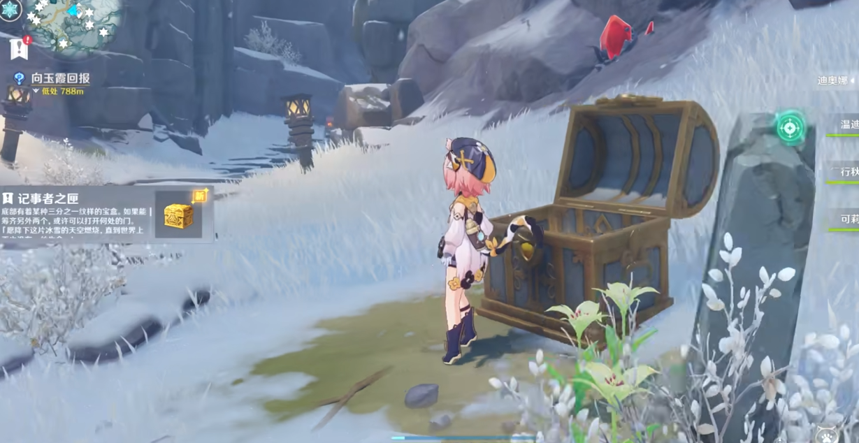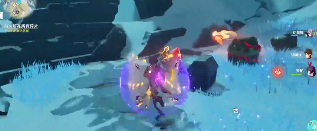 雪山顶峰的解锁需要完成山中之物任务,该任务要求玩家解除三处冰封碎片的封印。第一处位于覆雪之路附近,玩家需要收集周围四块深赤之石,依次攻击封印即可解冻。第二处在眠龙谷下方祭坛,需先启动机关激活五个冰柱,按仙灵飞行顺序激活后击败遗迹守卫,最后用深赤之石解封。第三处位于星荧洞窟底层,需完成挑战并找到隐藏的深赤之石才能解封。每处碎片的解封都需要四次有效攻击,且深赤之石离开特定范围会失效。