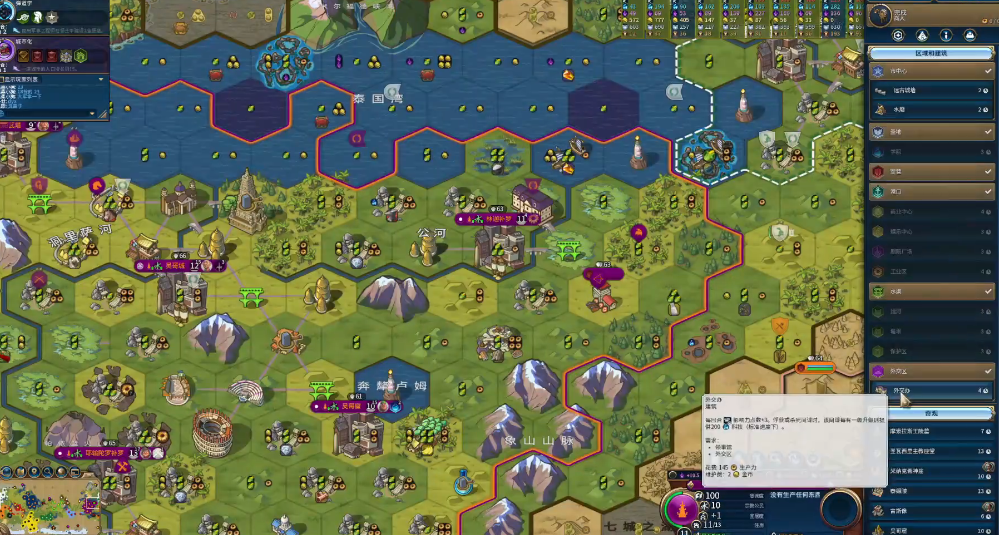 早期城市建设需要注重资源开发和人口增长。生产建造者改良周边资源是首要任务,通过建造农场、矿场等设施提升基础产出。开拓者应在首都基础建设完善后再考虑建造,过早扩张会导致资源分散。城市住房和宜居度管理不容忽视,粮仓和水磨等建筑能有效解决早期住房压力。区域规划需提前考虑相邻加成,工业区靠近矿山、学院靠近山脉等布局原则需要严格遵守。