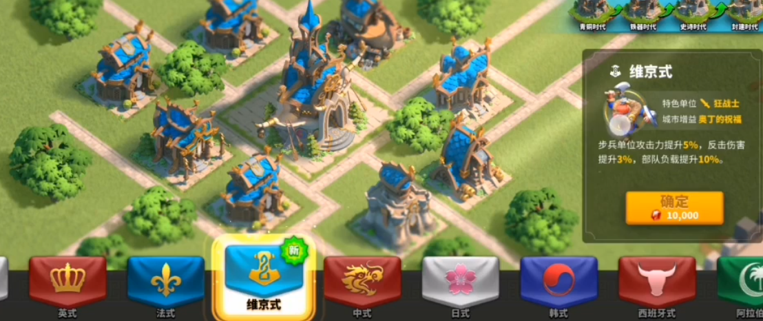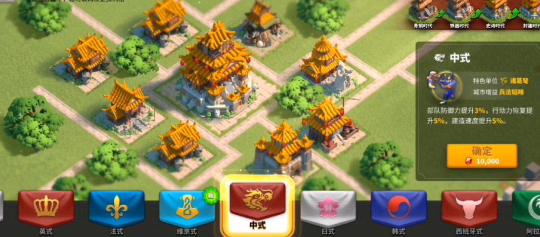 前期用中式快速发育,中期转韩式冲科技,后期再根据主力兵种换成战斗型文明。最后文明更换需要消耗文明更换卡,所以前期选择时要慎重考虑。如果你是零氪或微氪玩家,建议优先选择收益稳定的文明,比式或维京,避免频繁更换浪费资源。