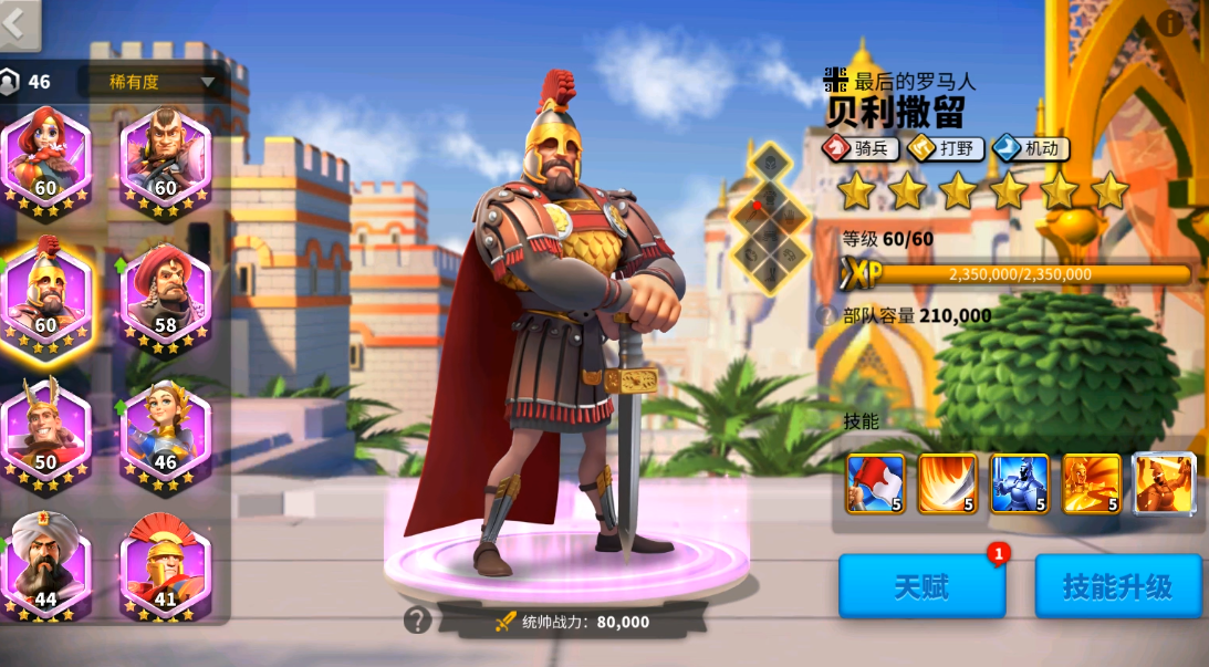 贝利撒留是游戏中非常实用的紫色骑兵将领,主打机动性和扫田能力。他的核心优势在于铁甲军技能提供的防御加成和脱战后的移速提升,这让他在游击战中表现突出。诈降技能可以降低敌人攻防属性,配合后续伤害效果在扫田时非常有效。战无不克技能提升对野蛮人和中立单位的伤害,打野效率不错。觉醒后浴血铁甲军进一步强化防御和移速,让他的机动性达到极致。