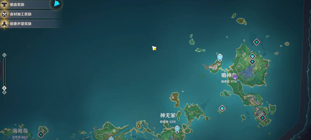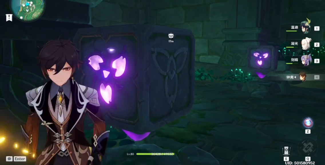解开第二个方块机关后,水位会下降,这时候返回门外,会发现新的通路。沿着这条路走,能找到一个传送锚点,激活它就能解锁鸣神岛的部分区域。继续深入探索,还会遇到更多机关和谜题,比如雷立方机关,调整它们的方向让五个雷立方朝向同一面,就能进一步解锁大门。