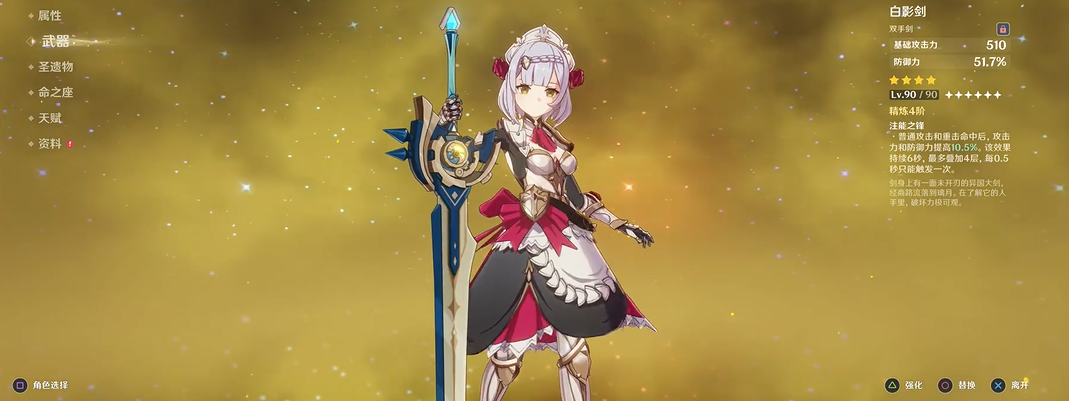 武器搭配方面,四星武器钟剑与白影剑是诺艾尔的优选,前者通过重置元素战技冷却提升辅助能力,后者提供高额防御力加成。中期阶段可考虑遗馈套装,其2件效果提供20%元素充能效率,4件效果在释放元素爆发后为全队恢复能量,显著改善诺艾尔充能短板。该套装可通过世界BOSS或宝箱获取,成型难度较低。若队伍缺乏治疗,被怜爱的少女2件搭配守护之心2件能提升治疗量与防御力,但需注意少女套为五星圣遗物,仅作为过渡参考。