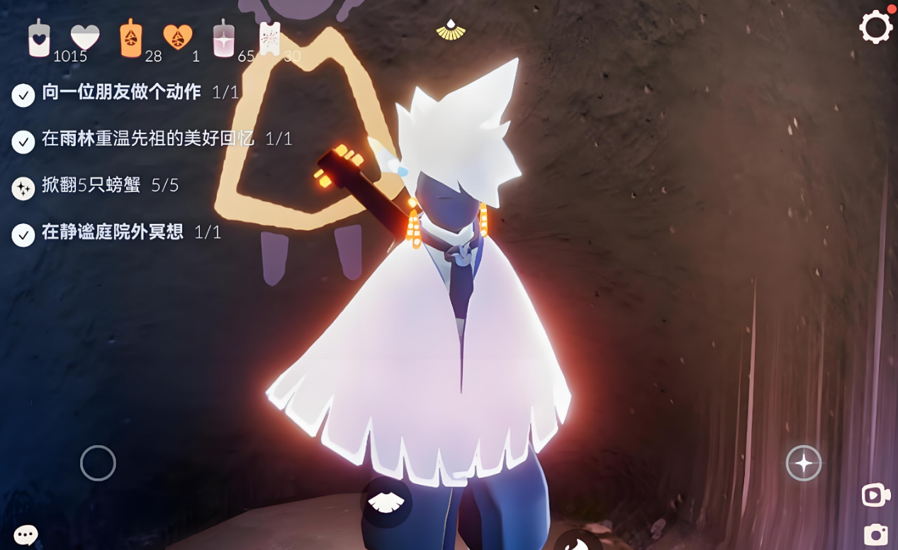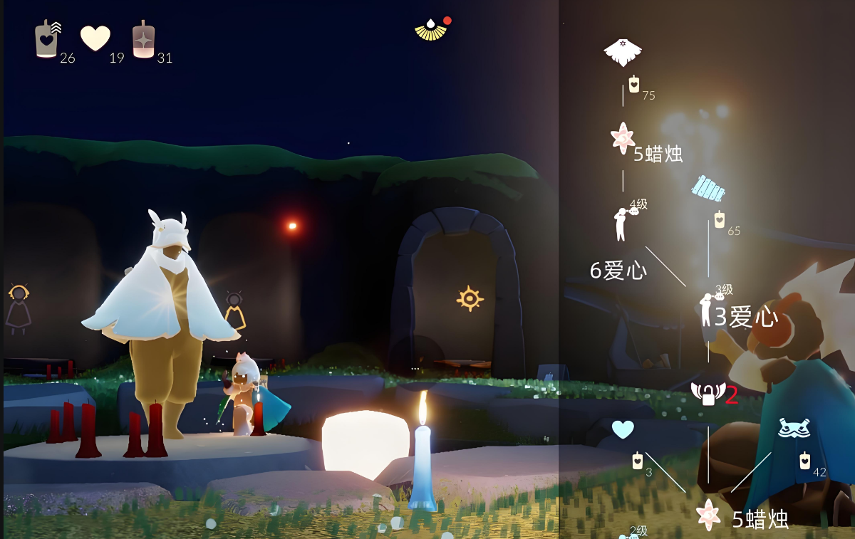 还有一些斗篷可以通过特殊方式获取,比如白色斗篷需要在雨林耗尽能量触发隐藏机制,或者通过禁阁的灵语者先祖兑换。黑色斗篷则需要在墓土找到躲藏害怕动作先祖,用50颗爱心兑换。如果想省时间,可以多利用挂机点收集烛火,比如音乐商店、云野幽光山洞或雨林老奶奶做饭的地方,这样能更快攒够资源。