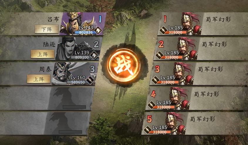 战斗开始后,咱们的赵云要快速解决幻影部队,然后硬吃第一个部将的战法。貂蝉上场后要把握好时机,先用平砍解决残兵,等见到第二个部将时立即切换自动释放战法。关羽上场时不要急着放战法,先靠普攻消耗敌人,最后一排再释放战法给夏侯惇加护盾。夏侯惇带着护盾能坚持更久,为周瑜创造输出环境。当吴兰剩下三四排兵时,就是周瑜放火烧敌的最佳时机。