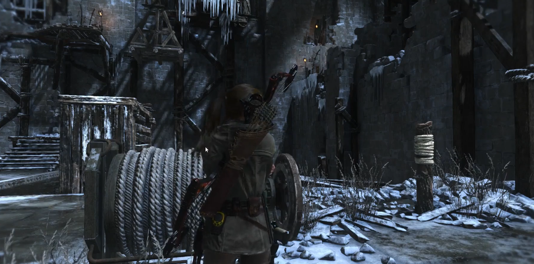 在平台升至最高点后,需立即割断连接绳,使平衡踏板缓慢恢复至原始位置。当左侧踏板接近与左侧道路齐平时,使用箭矢重新连接固定。若无法通过踏板返回右侧高台,可改为攀爬绳子,利用两根绳子的高低差移动至高台。这一环节对操作精度要求较高,需反复尝试以掌握最佳时机。