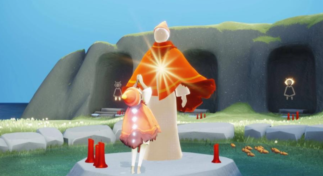 让小星星回归天际,首先你得找到那些藏在各个地图里的先祖。这些先祖通常躲在比较隐蔽的角落,比如山洞里、高台上或者需要解谜才能到达的地方。点燃他们他们会变成蓝色的人影,这时候你需要跟着他们的光点走,收集他们的回忆碎片。完成这个过程后,先祖就会变成一个金色的小星星,接下来你就要带他们去神庙祈祷,让他们真正回归天际。