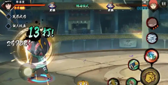 基础连招通常以木叶旋风起手,该技能具有中短距离突进效果,命中后会造成敌人浮空。应立即接3-4段普攻将敌人推向墙角,随后释放无限乱舞进行持续压制。当能量条满时可进入强化状态,二技能不再消耗充能,但要注意能量会快速减退。在敌人血量较低时,可使用表莲华进行终结,该奥义具有全屏吸附效果,但需确保敌人在控制状态下释放以免打空。