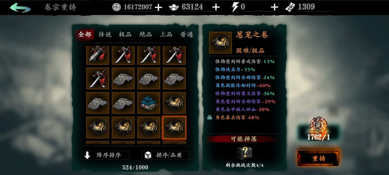 拿到卷宗后,别急着用,先看看它的品质和难度。如果是普通或者上品卷宗,咱们可以通过重铸来提升难度。重铸需要消耗古商币,可以在卷宗商店里兑换。重铸会随机刷新卷宗的词条,如果运气好,就能把难度洗到湮灭级别。金色和橙色的卷宗更容易洗出高难度,紫色及以下的就比较看脸了。洗到湮灭难度后,记得先把笔记点满,这样刷的时候能稳定拿到最高奖励。