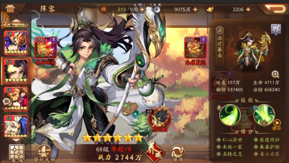 阵容构建需遵循双核驱动原则,主副C位需形成属性互补。蜀国推荐采用关羽+赵云组合,前者负责前排突破,后者专精后排刺杀,搭配诸葛亮八阵图提供的全体减伤与怒气恢复形成攻防闭环。魏国则以夏侯渊为绝对核心,配合张郃的压制开场与甄姬的续航辅助,形成爆发收割循环。群雄阵营中貂蝉与左慈的双控体系能有效打断敌方技能链,华佗的毒伤与治疗则提供持久战保障。
