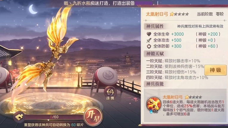 武将站位推荐为1号位貂蝉、2号位甄姬、3号位吕玲绮、4号位大乔、5号位小乔、6号位张春华。战魂选择战意勃发、连携加护和爆裂冲击能最大化输出效率,神兵配置建议太凰射日弓、乾天玄灵扇和大夏龙吟枪的组合。该阵容的优势在于培养难度较低,除貂蝉外其他武将获取相对容易,且女性武将专属的15%减伤和20%暴击率加成在对抗男性为主的副本时优势明显。