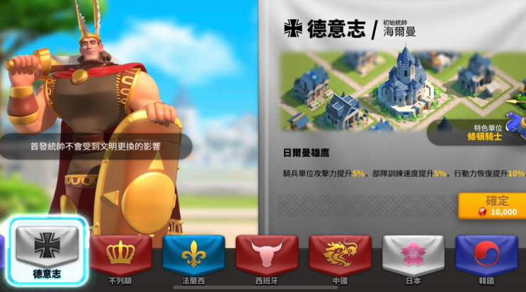德意志文明以10%的行动力恢复速度成为中后期热门选择,适合需要频繁作战的玩家。该文明对骑兵单位的攻击力和行军速度加成显著,在野战和资源掠夺方面表现突出。英国文明则强化了弓箭手攻击力,搭配城市发展速度提升,适合偏好远程兵种体系的玩家。韩国文明的研究加速特性在中期科技研发阶段价值极高,但需要玩家已具备25级市政厅基础。