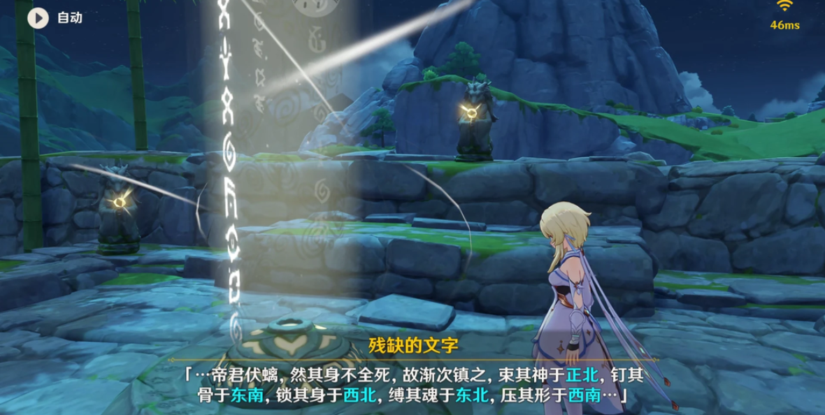 第一块碎片位于无妄坡下方的遗迹内,击败守护的遗迹守卫后,调查圆盘并按照提示启动三个奇怪的石头机关即可获得。第二块碎片需要前往轻策庄最高处的山顶,那里有一圈岩尊像,按照特定顺序点亮(通常是从右开始1247的顺序)后,水池中间的宝箱会出现第一块碎片。第三块碎片位置较远,在无妄坡下面的区域,需要击败守护巨人并完成相应解谜。