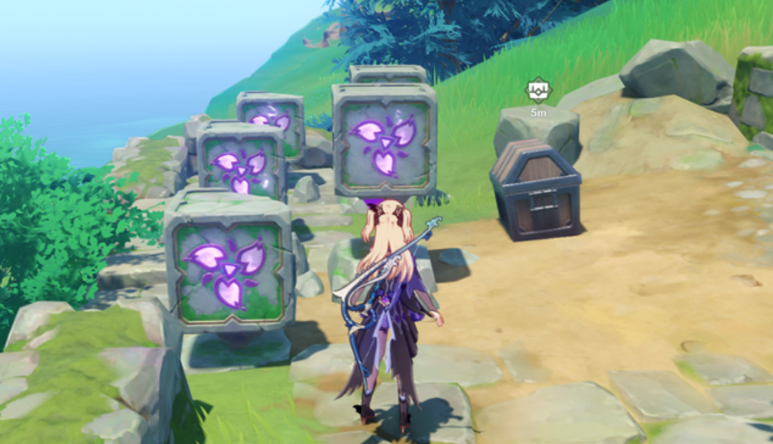 紫色石头是一种常见的解谜元素,通常需要按照特定方式点亮或击碎才能解锁宝箱或继续任务。这些石头有的需要火属性攻击,有的需要调整朝向或点亮花瓣数量,具体方法取决于石头的类型和周围环境。遇到刻有紫色三瓣花的石头时,可以先用普通攻击试探。如果石头下有紫色发光底座,说明它可以通过攻击调整朝向。这类石头通常是联动的,转动一块会影响其他石头,需要让所有石头的花瓣面朝向同一方向。推荐使用弓箭角色远距离观察和调整,这样更容易掌握整体朝向。联动规律可能需要多试几次才能摸清,但一旦找到规律,解谜就会变得简单。