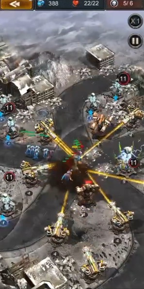 该关卡敌军呈现多波次进攻特点,初期需优先建立以防御塔为核心的环形防线,建议将箭塔与炮台交叉部署在基地外围三处隘口,同时保留至少两座机动兵力用于填补防御缺口。建筑升级顺序应遵循城墙-兵营-研究所的优先级,确保防御强度与科技研发同步推进。资源采集需在战斗间隙持续进行,重点保障石油与钢铁的供给量维持在安全线以上。