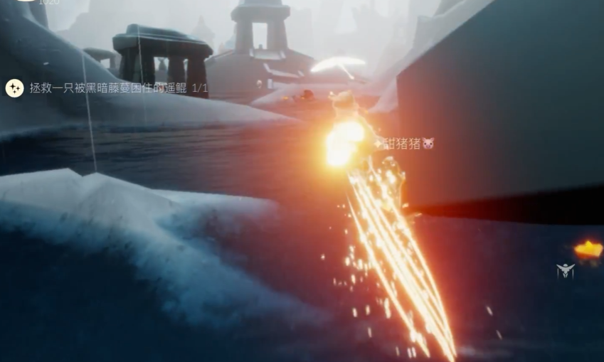 解救遥鲲的核心操作是使用蜡烛燃烧其身上的黑暗植物。第一只遥鲲位于雨林三塔图(水母图)断桥下方,进入场景后沿斜坡直行即可发现;第二只在右侧隐藏图出口附近的水域中,需从第一只位置向右飞行抵达。对于独狼玩家,建议优先选择断桥下的遥鲲,因其藤蔓生长速度较慢且单人可完成。若遇到藤蔓再生过快的情况,可尝试与其他玩家协作,多人同时燃烧能显著提升效率。注意燃烧过程中需保持角色紧贴藤蔓根部,避免因雨水或距离过远导致中断。