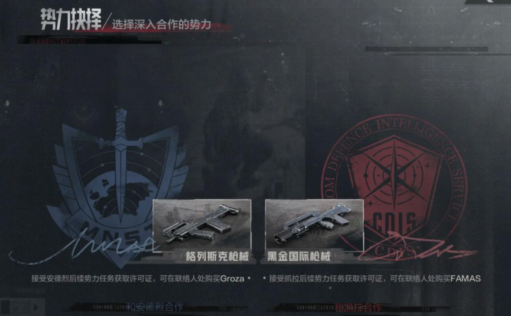 势力任务系统中,科伦联邦与特维拉财团的对抗借鉴了部分冷战背景,玩家完成特定任务后可获得势力专属武器。虽然这不是直接的苏联势力,但部分装备如Groza突击步枪延续了苏系武器设计风格。玩家在选择势力时需要权衡双方提供的武器性能,这关系到后续作战效率和资源获取。