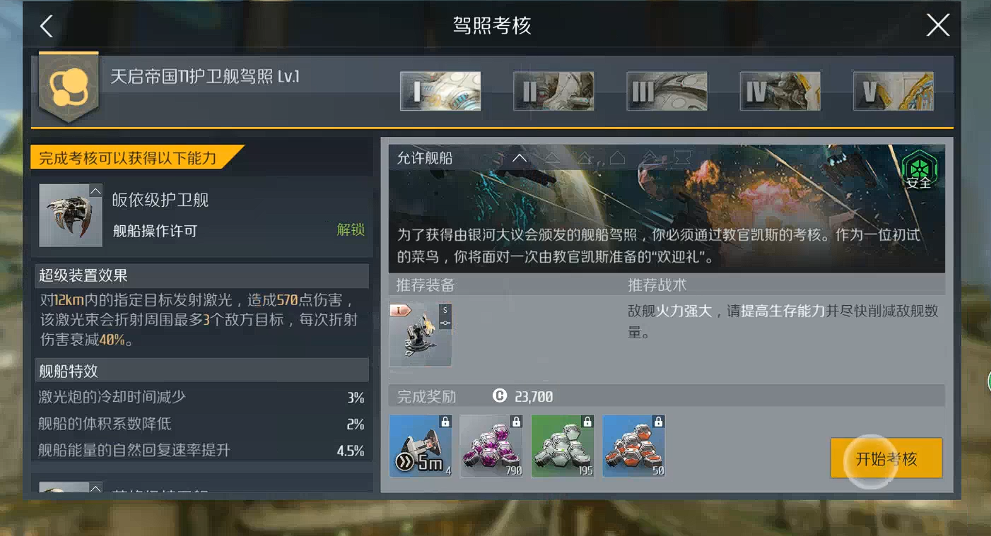 天启战列舰的驾照分为五个等级,每通过一级都会解锁新的装备栏位。从T1到T3需要循序渐进,不能跳级考核。建议先把T1的五级全部通过,再去挑战T2内容。考核时会遇到不同类型的敌舰,重装型需要更多时间消耗,火力型则要优先击毁。注意控制能量消耗,大型能量回冲器是续航关键,但别同时开启太多耗能装置。