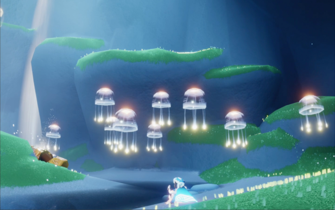 黑色工装裤的兑换方式很简单,咱们先传送到圣岛季地图,直接飞到最大瀑布后面的半圆形山洞里。这里有很多水母,所以也叫水母洞。点燃洞里的水母叫声先祖,就能看到兑换树了。这条裤子需要24根季节蜡烛,如果已经买了季卡,当天就能凑齐蜡烛换到。工装裤是季卡限定物品,没买季卡的小伙伴就暂时没法兑换啦。