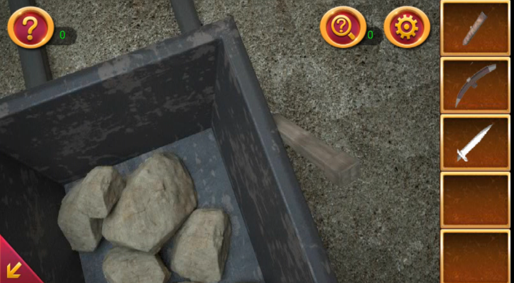 咱们先直奔主题,这一关的核心是收集道具并合成鱼竿钓鱼。进入房间后,记得先捡起左侧墙上插着的剑、地上的长枪、石堆里的蚯蚓,还有门上石像的耳环。这些道具缺一不可,尤其是蚯蚓和耳环容易被忽略。接着走到右侧水边,用剑割断木桩上的绳子,绳子会和其他道具组合成鱼竿的关键部分。