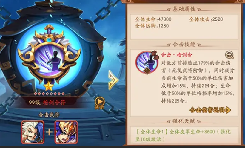 地刺枪剑合符是群雄的功能性符咒,地刺部分可针对敌方回怒型武将进行补控,枪剑部分则提供攻击或格挡增益。三星枪剑合符能为全队增加20%攻击或格挡,持续两回合,显著提升输出或生存能力。该符咒通常置于二位或三位,在敌方首轮输出后生效,既能反制敌方控制,又能为后续大招提供增益支持。符咒的实战效果与阵容站位密切相关。群雄武将如吕布、貂蝉等需根据符咒特性调整位置,例如狂熊符搭配前排输出武将,寒冰裂符配合控制型武将。