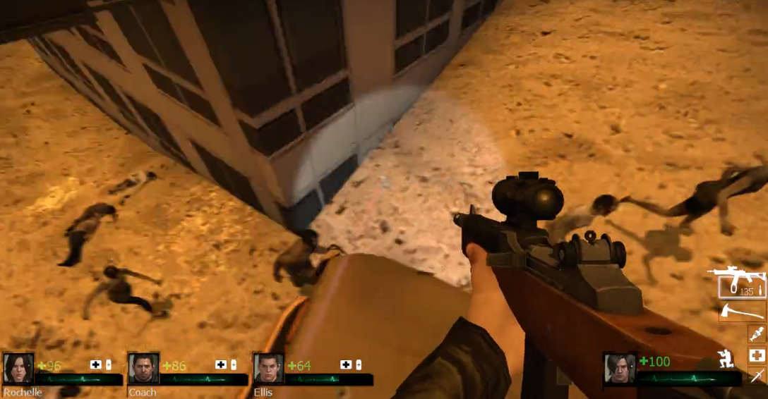 开局阶段玩家会出现在一个沙漠绿洲区域,周围散落着飞机残骸。初始武器配置通常为手枪和近战武器,建议优先搜索附近区域获取医疗包和弹药补给。该地图的特殊感染者刷新频率较高,行进过程中需要时刻注意屋顶和角落可能出现的Hunter或Smoker。团队移动时应保持紧凑队形,避免单独行动被特殊感染者孤立。物资管理尤为重要,确保每位队员至少携带一个医疗包。