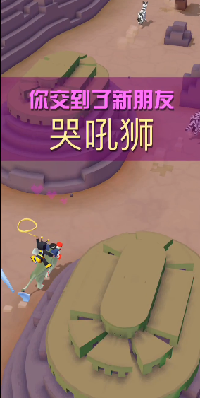 哭吼狮的外形很有特点,它戴着马戏团小丑的装扮,跑起来时两边会喷水,看起来特别欢乐。抓到它后会显示交到了新朋友哭吼狮的提示,这时咱们就能把它带回空中动物园了。骑上哭吼狮后屏幕旁边会出现爱心图案,等外围那圈转满才算真正捕获成功。这个过程需要保持稳定操作,避免撞到障碍物。
