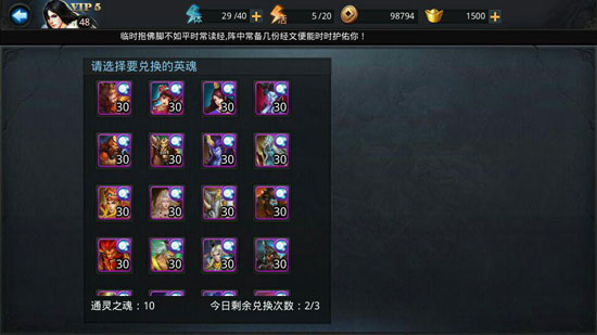 英雄碎片系统是升星和获取的核心机制。重复获得的英雄会自动转化为通灵之魂,在寻仙捉妖界面可兑换指定英雄的碎片。祈愿玩法通关第六章后开放,每日免费一次机会获得随机1-8个碎片。仙魔悬赏的随机奖励、排行榜兑换和签到都是碎片稳定来源,集齐90个碎片即可兑换3星英雄。