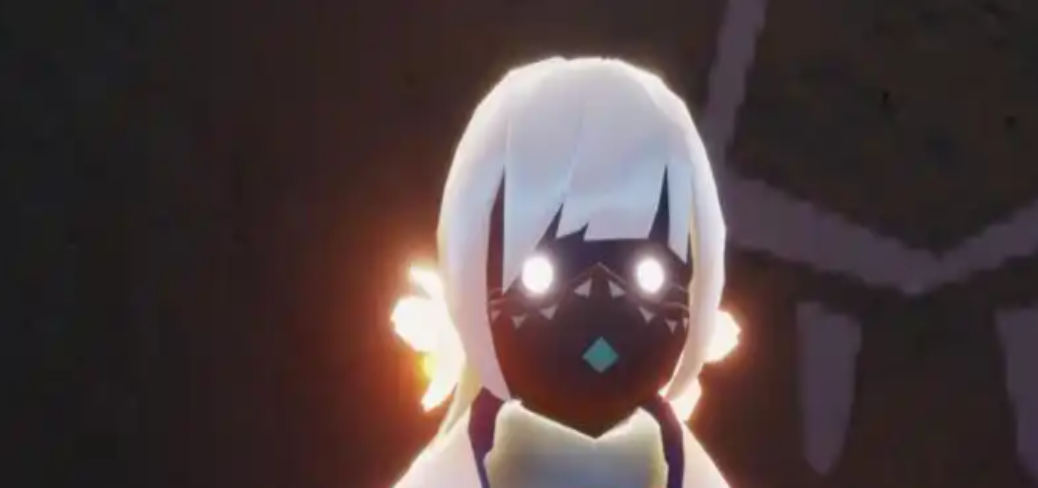 黑脸面具的获取方式稍微不同,需要在霞谷滑冰场赛道触发蓝色光点,然后在终点找到双手交叉站立的先祖。解锁这位先祖的兑换路径后,花费30颗爱心就能拿到黑脸面具。这类面具通常需要先解锁前置节点,所以提前准备好足够的蜡烛和爱心很重要。