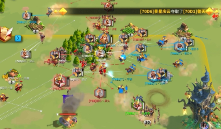 攻击联盟建筑时,优先选择与敌方领土相连的旗子或要塞作为目标。燃烧速度与目标建筑耐久度挂钩,持续进攻能阻止对方修复城墙。如果敌方联盟活跃,建议先切断其领土连接,限制援军支援。研究联盟科技中的燃烧加速技能,能进一步缩短攻城时间。