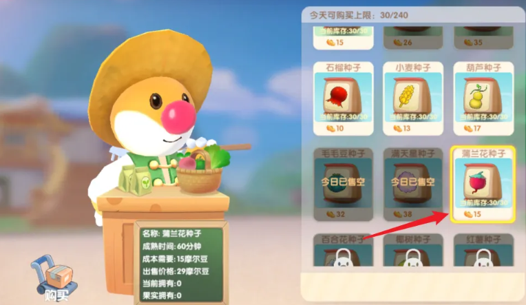 高效拿到蒲兰花,有些事情你得多留心一下。自己种植的话,一定要确保土地的水分和肥料是充足的,这样蒲兰花才能健康成长,别种下去就不管了。购买种子时注意,梅森的商店里每种种子每天都有库存上限,所有种子加起来还有个总购买上限,你要是打算大规模种植,最好提前规划,别等到想买的时候发现买不了了。通过任务获取也是个途径,游戏里有些任务会奖励蒲兰花或者其种子。