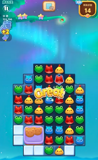玩家需要留意动物颜色的分布,合理利用连击效应来加速消除。当出现鸡蛋或翻倍道具时,需把握替换时机,确保染色宝宝与特效交换后能触发全屏清除,从而快速点亮剩余赛道。通过快速形成魔力鸟并高效组合特效,玩家可以稳步推进,最终完成挑战。