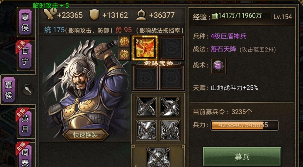 光是司马懿自己硬还不够,队伍里其他几个将也得安排好。通常打198副本,会推荐司马懿、夏侯渊、甘宁、周泰和关羽这么一套阵容。这里面的夏侯渊可以不带觉醒,给他配上白刀和白鞋,主要作用是稳定输出和减少被敌人破甲的次数。而甘宁、周泰和关羽则最好都是觉醒状态,并且各自带上合适的技能,比如甘宁配凤凰,周泰配灵龟,关羽配烛龙。装备上也是这个道理,红甲或金甲对生存至关重要,如果暂时没有,用两件黄甲也能顶一顶。