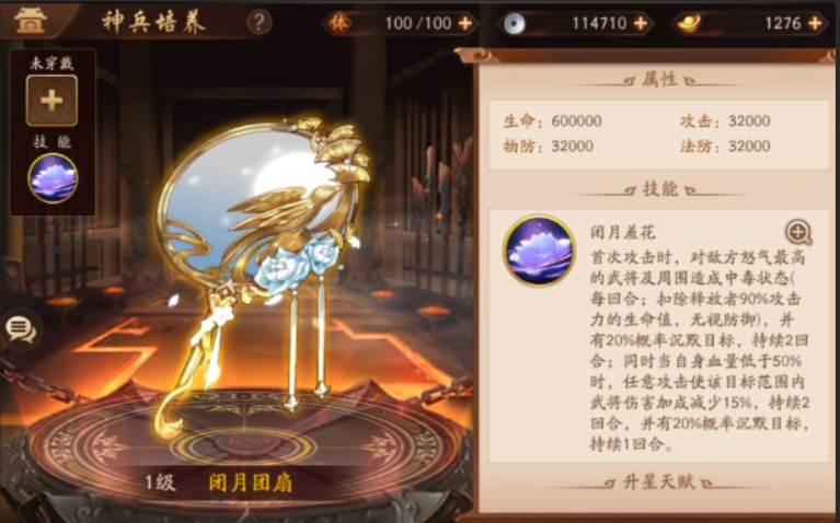 选择神兵时需要根据武将的定位来决定,例如输出型武将如典韦或马超,适合携带丈八蛇矛或龙胆亮银枪,这些神兵能显著提升暴击和攻击力,让武将在战斗中打出更高伤害。对于辅助或控制型武将,比如曹操或郭嘉,则更适合闭月团扇或苍叶绿绮琴,以增强团队的控制或治疗能力。防御型神兵如不败战盔或青龙偃月刀则适合身板较脆的武将,帮助他们在持久战中稳定发挥。神兵的星级和品质也很重要,高品质神兵的基础属性更高,技能效果也更强大,因此建议玩家优先将资源投入到主力武将的神兵培养上。