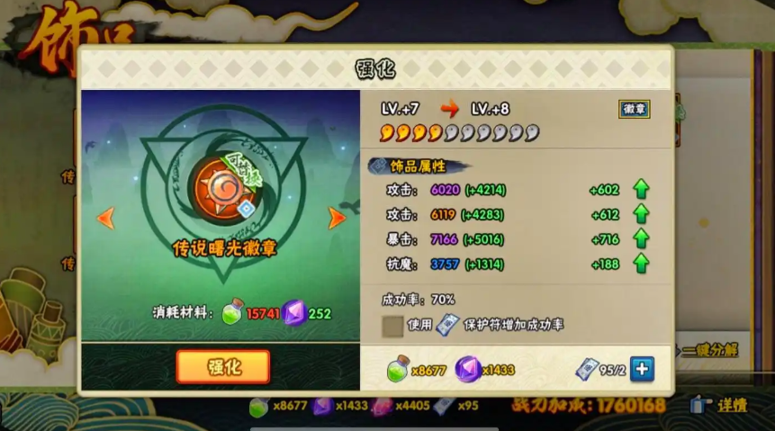 掌握了提升抗魔值的方法后,我们还需要运用一个至关重要的技巧来精准获取用于刷保护符的材料——即70级的赤魂系列饰品。游戏中的部分获取饰品的途径,比如某些活动奖励、秘境周宝箱或者组织追击晓组织的奖励,其产出的饰品等级与你领取奖励瞬间的抗魔值直接相关。一个公认的技巧是:在领取这些可能产出橙色或紫色饰品的奖励之前,主动卸下身上的部分饰品,将你的实时抗魔值精准地控制在5921到8061这个区间内。这样操作后,你领到的饰品就有极大概率是70级的赤魂系列,无论是橙色耳环还是紫色饰品,都正好符合我们刷保护符对原材料的需求。如果不进行控制,抗魔值过高可能会导致你拿到更高级但无法高效产出保护符的饰品,造成资源浪费。