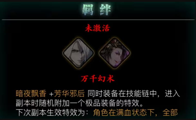 有几套羁绊组合被认为是构筑的基石。怪面科技羁绊由魔堡故人、蛇眼和铁诞组成,激活后能减少装备套装效果所需的件数,这是游戏中最核心的搭配之一,因为它极大地解放了装备选择空间,让你可以更灵活地搭配其他强力套装。魔堡故人本身也是公认的T0级心法,其绝技能够增加基础攻击力、控制敌人并削弱敌人护甲,从前期到后期都非常实用。另一套强力的增伤羁绊是光与暗,由黑暗无情和白衣留情组成,能显著提升造成的伤害,但也会增加受到的伤害,适合追求极限输出的玩家。万千幻术羁绊(暗夜飘香与芳华邪后)则能显著减少技能链的冷却时间,提升技能释放频率,适合依赖技能连招的职业。