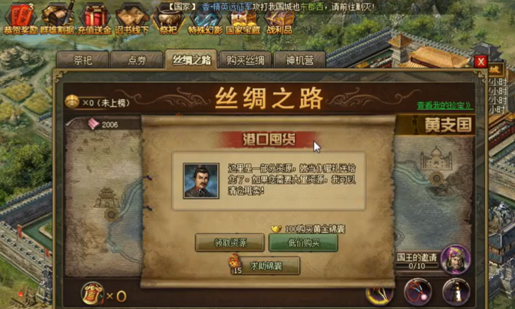 丝绸之路是获取珍宝碎片和提升实力的关键玩法,无论是否为充值玩家,参与这项活动都能带来显著的收益,在游戏的资源界面中可以找到入口,通过派遣车队开始旅程,途中会遇到各种事件,处理得当能快速积累资源。