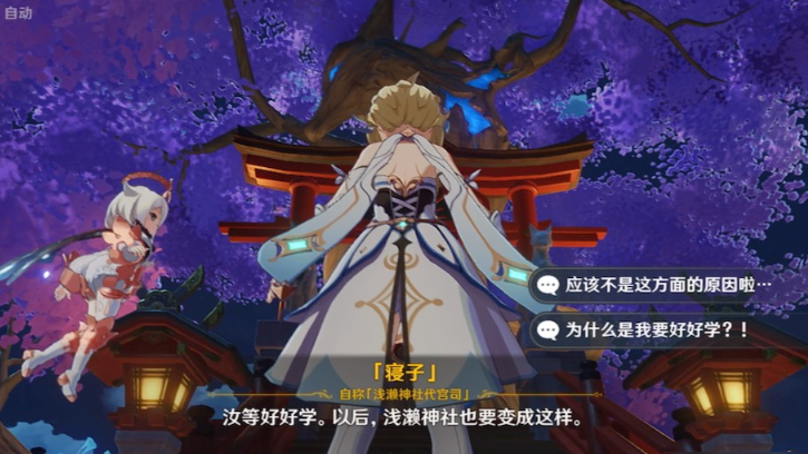 当你成功刷满四次相关的每日委托后,再次前往清籁岛的浅濑神社。这时,你会看到寝子的头上出现蓝色的感叹号,这标志着隐藏的后续世界任务鸣神寻踪终于可以触发了。与寝子对话,它便会正式将这个任务交给你。任务内容主要是陪伴寝子,根据它的指引前往鸣神大社寻找巫女稻城萤美询问一些尘封的往事和信息,最终再护送它一同返回清籁岛。