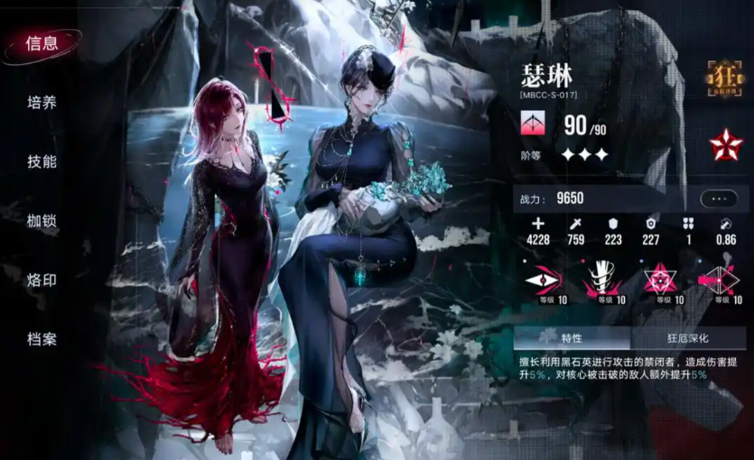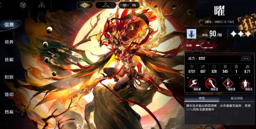曜则是一位以高额法术爆发伤害见长的狂暴系禁闭者,其技能组设计使其在短时间内能倾泻出极其可观的输出。他的核心优势在于必杀技能的高倍率伤害以及可能附带的破核与增伤机制。根据分析,其技能数值给得相当充足,整体强度出色,即使是0锁也有很好的使用体验。曜的爆发能力使其在面对高血量单体首领或需要在短时间内清场的高压关卡时表现突出,他在多期暗域等高难玩法中因其高效的输出能力而显著降低了通关难度。其定位更偏向于瞬时爆发的核心法术输出手,能够迅速解决战斗中的关键威胁。