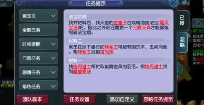 日常活动是随机触发法宝任务的主要途径,49级玩家应优先参与高频率任务以增加法宝任务的获取概率。这些任务通常不需要额外条件即可自动发放,完成此类活动不仅能积累经验储备,还能提前熟悉法宝任务的流程和要求,为达到60级后快速集成法宝系统做好铺垫。