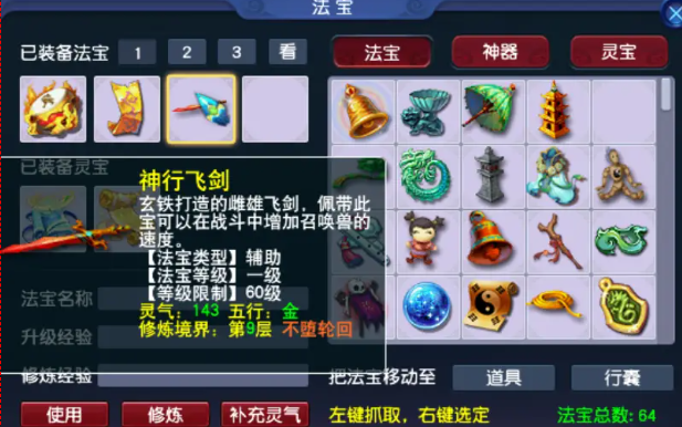 法宝的升级和灵气管理是后期使用的核心环节,49级玩家虽不能直接修炼法宝,但可提前了解经验消耗和补充机制。法宝升级需消耗大量角色经验,而灵气则通过场景战斗或功能操作恢复,提前规划资源积累能有效避免达到等级后出现经验或灵气短缺的问题。