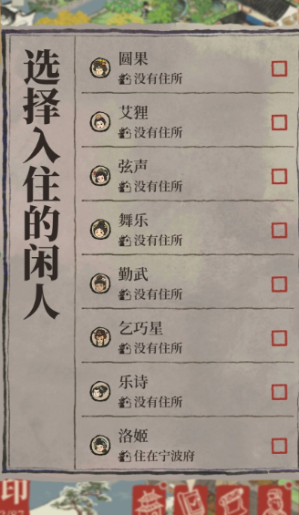 获得闲人后,你需要为他们安排专门的住所。闲人无法入住普通民宅,必须安置在特定的闲人建筑中。游戏内提供了一些专属建筑,例如孟母老宅、残雪楼园、半山阁和广寒宫等。一些从桃花村等玩法中获取的景观建筑,如采药圃、静竹坊、读书堂、茅草屋等,经过特定处理或升级后,也能够作为闲人的住宅使用。当你点开这些符合条件的建筑时,就可以在列表中选择已拥有的闲人安排入住。