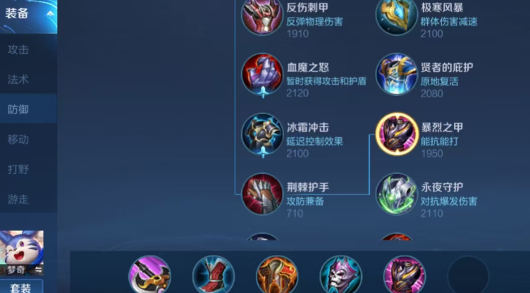 当队伍缺乏前排承伤单位时,纯肉装的梦奇也能作为坚实的坦边登场。这种思路完全放弃了个人输出,转而追求极致的生存与控制,为队友创造输出空间。出装会以提升双抗和生命值为主,例如反伤刺甲、红莲斗篷、魔女斗篷和不祥征兆等。红莲斗篷能持续对周围敌人造成法术伤害,弥补一些清线能力;魔女斗篷应对敌方法师;不祥征兆的被动减速能有效限制攻击者的走位。这套出装的梦奇虽然伤害能力有限,但凭借技能自带的护盾和减速,在团战中能吸收大量伤害并搅乱敌方阵型。