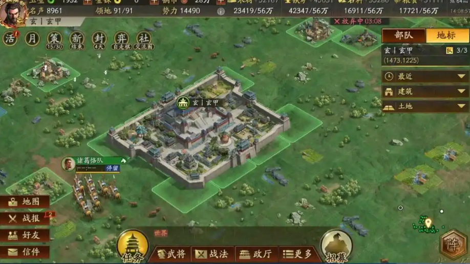 提高统御值的过程需要精心的资源规划与管理。升级君王殿和帅令坛都需要消耗大量的石料和木材等基础资源。为了保证升级的流畅进行,你需要注重占领更高级别的石料地和木材地,以此来提高资源的稳定产量。在资源有限的前期,为了将资源集中用于快速提升君王殿等级,可以考虑暂时放缓其他非必要建筑的升级速度。合理利用屯田功能也能有效加速特定资源的积累,为建筑升级提供保障。