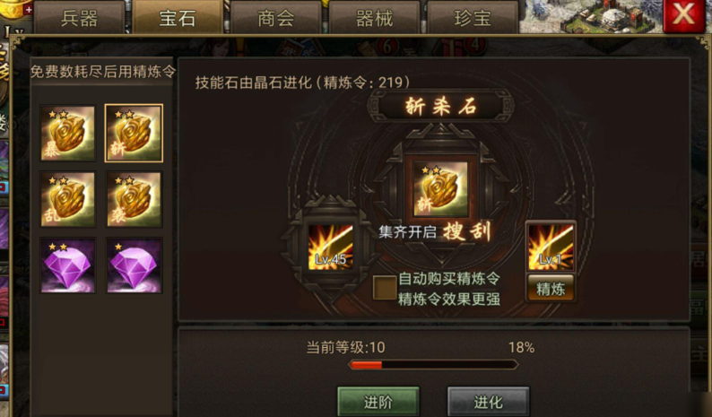 在升级晶石等级的必须同步进行晶石技能的培养,这主要通过金币精炼系统完成。晶石技能共有爆击、斩杀、韧性、无双、强袭、坚守、乱舞七种类型,每种技能分为5个等级。精炼时应注意技巧,不建议持续对单一技能猛点,轮流点击不同的技能有助于提高成功率。尤其是当晶石合成到5级或10级解锁新技能槽时,可以先对新出现的技能进行精炼,再回头处理原有技能,这是一种被验证能有效管理精炼成本的方法。