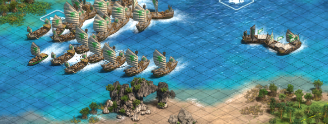 陆军的职责是在稳固防守的间隙主动出击,优先消灭黄色若开邦的出兵建筑,如兵营、靶场等,以削弱其持续施压的能力。海军的炮舰是此阶段破局的关键,应优先用于攻击敌方海岸线的城堡与军事建筑,逐步夺取制海权。此阶段需时刻平衡攻防节奏,切忌因冒进导致主力部队损失或防线崩溃。